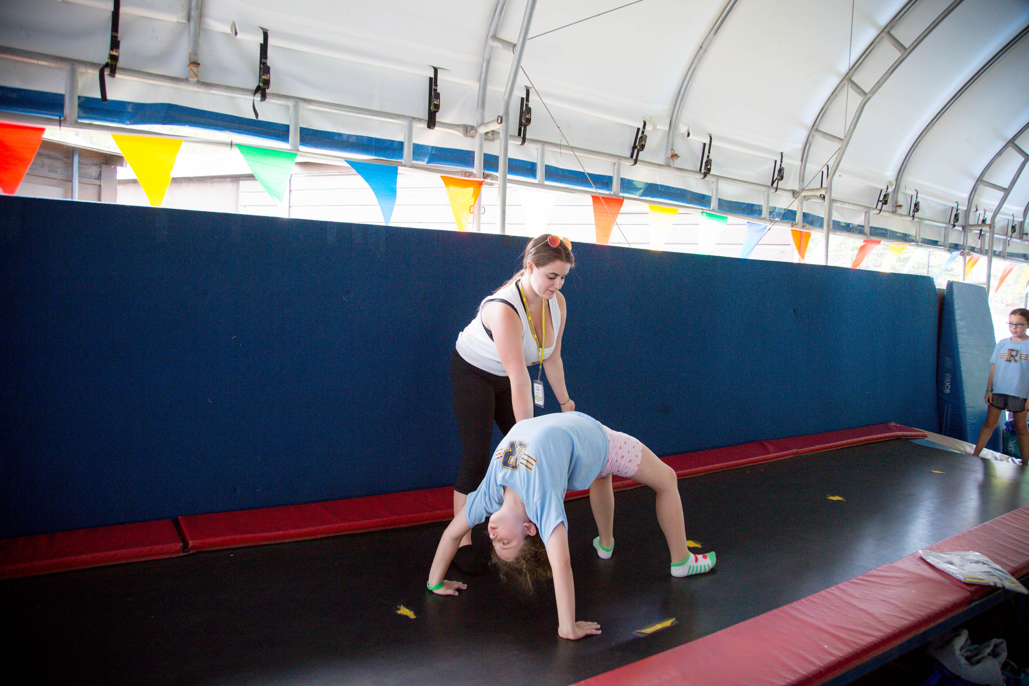 10 year old girl in gymnastics at Summer Camp. Camp Ramaquois Pomona New York