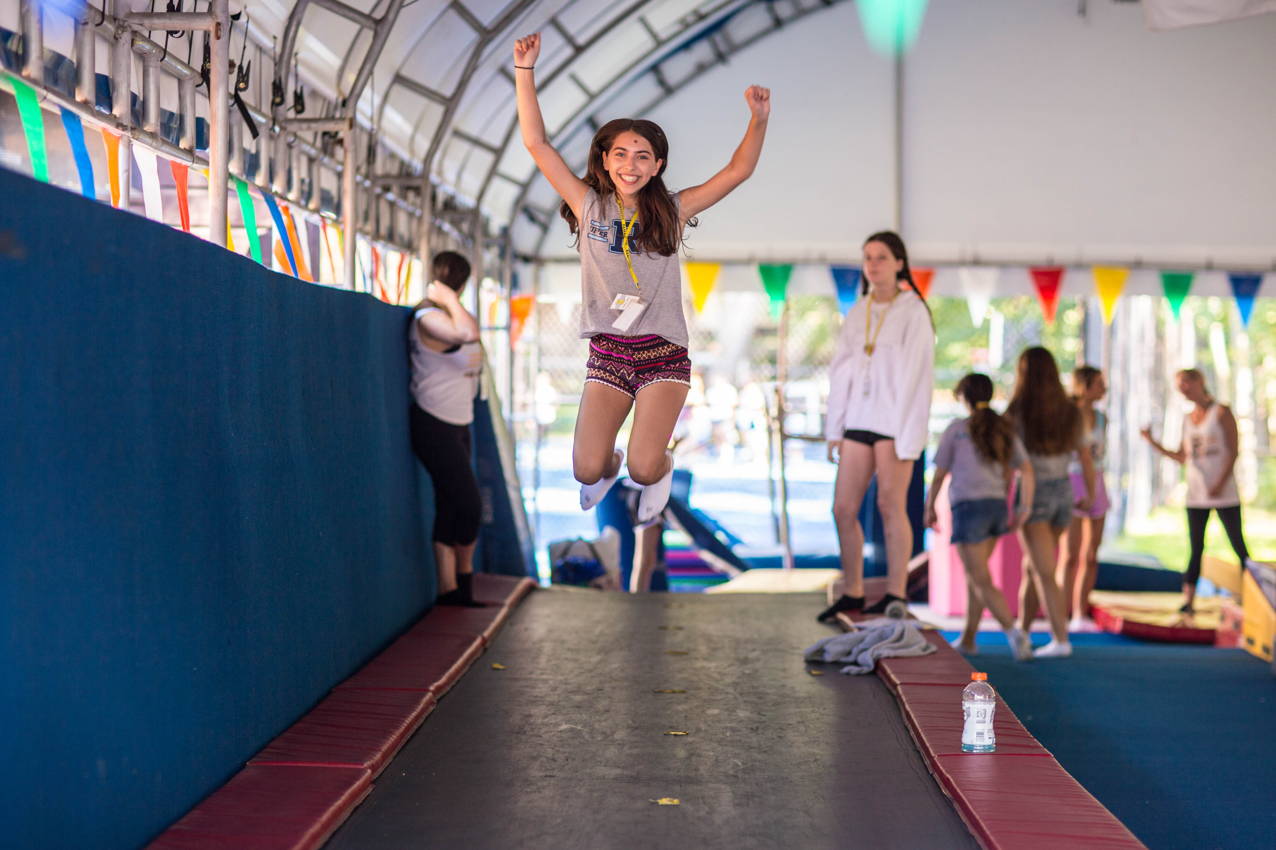 13 year old girl at gymnastics at Summer Camp. Camp Ramaquois Pomona New York